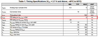 在ADS8320的规格书里,Tcsd最大为0ns,请问这是不是意味着Dclock极性只能是空闲为低?
