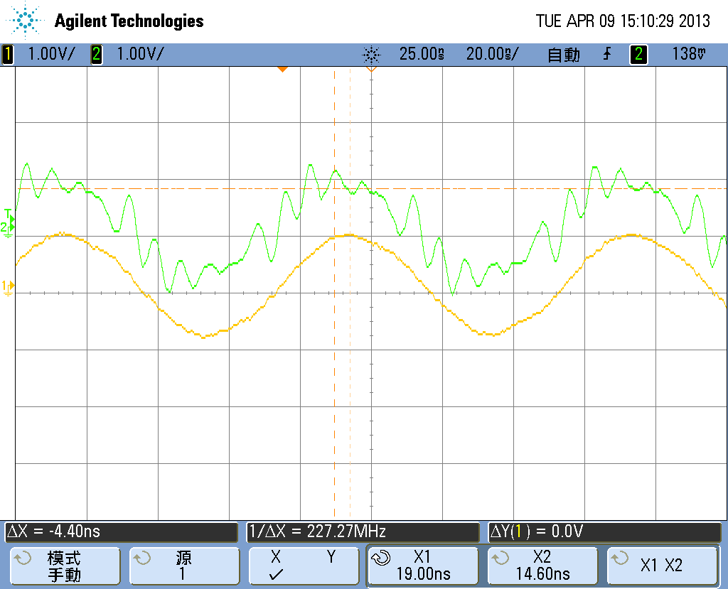 • 示波器输出分别是两个通道的输出,即有时会一个通道正常一个通道锯齿,当然也会有都正常或都锯齿的情况。