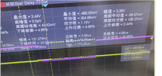 你好我clkin 改用stm32 占空比 50% 的PWM波(如下图) ,之前8.192MHZ晶振可能示波器带宽不够( 示波器100MHZ 1GSa/S )