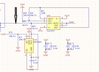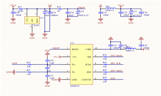 U16的IN2+输入差不多是1.25V左右的直流信号,然后经过一级跟随后量AINP处的信号就不是1.25V的直流信号,纹波非常厉害,峰峰值达到了5V,AINP接到了ADS8339的IN+,不知道是哪里问题,TI的高手帮忙看看哪里有设计问题。