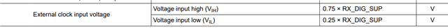 您好,XIN参考的是RX_DIG_SUP的电压,而RX_DIG_SUP的电压范围为2.0~3.6V之间,所以如果RX_DIG_SUP=3.3V的话,XIN的Vih(min)=0.75*3.3=2.475V。所以1.8V是不允许的,可以考虑加一颗1.8V到3.3V的电平转换芯片。