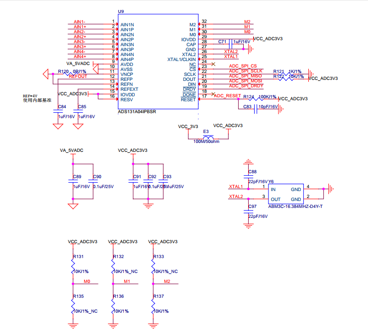 ads131a04外接16.384M有源晶振,fIclk设置为8.192M.fmod为4.096M,fdata为41.667kHz。