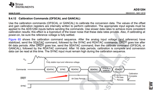As the picture above, during the calibration procedure of ADS1284, what is the DRDY signal should be? Is there 64 rising edges to read the data or continuous high?