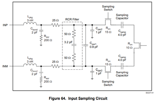 请问ADS6422这个差分输入的采样保持电路中的Ron有什么用呢?采样频率对采样保持得到的电压及其精度有什么影响呢?