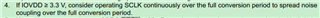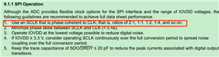 这里说要让SCLK和CLK保持相位一致性,建议了几个比例关系,那1:4之后是不是1:8?外部时钟CLK=25.6MHZ,按比例计算的话,SCLK都带小数,SCLK在这个比例附近是不是也没事。比如1:4时,SCLK=6.4Mhz,那么用6Mhz/7Mhz是不是也可以呢.