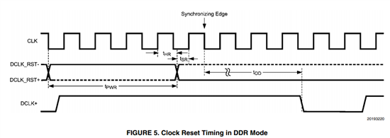 The DCLK_RST pulse must be of a mini-mum width and its deassertion edge must observe setup and