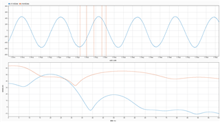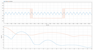 如图是ADS199其中两个通道记录的数据。橙色的是测试信号,蓝色的是外部信号,其中外部信号是1mV、20Hz的正弦波。从上图可以看到测试信号中会出现不整齐的波形。放大看是这个个样子: