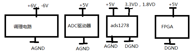 1、ADC的DGND应该怎样处理好些?和模拟电路AGND相连,还是和FPGA的DGND相连?