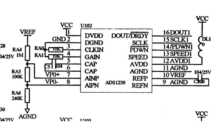 我是刚涉及数模转换器的软件工程师,使用了ADS1230作为AD转换芯片来写测重仪的程序(采用5v外部电压为传感器供电)。由于该传感器是TI07年的产品,从论坛中没有足够的资料能比对问题,我了解到该传感器为20位精度传感器(有效精度在17.3位以上),可以把模拟电路输入的毫伏级电压通过增益转换成数字输出(我采用64倍增益),在未接上电路模拟器时,ADS1230读到的数据始终为最大值524287(bit:01111111111111111111),但一旦接上模拟器,0毫伏输入的情况下,DOUT的数据变成20000(bit:1111101XXXXXXXXXXXXX)左右,但只有前7位保持稳定,后面13位一直反复跳变,逐渐加大电压输入,DOUT数字也在逐渐增加,当模拟器逐渐输入到40毫伏时,传感器读数变为44000(bit:1111010XXXXXXXXXXXXX)左右,同样只有7位稳定。