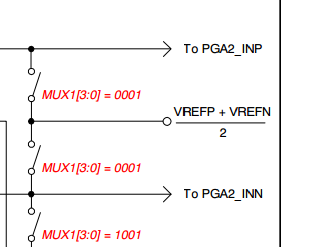 不知道你是不是指的下面这个,但是Mux = 0x0001,会将INP-INN短接,任何信号都进不去的吧