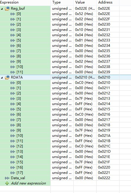 数据如下:C0 00 00 7F FF FF ,黄色标记的是通道1的输出数据。