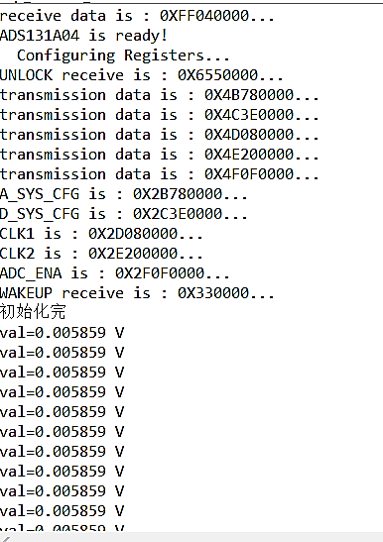 我尝试了读取其他寄存器,反馈都符合预期。刚开始不为0的数就是读取的转换数据,但数值除了第一个都有点离谱,每次都会有些不相同,我也很疑惑。