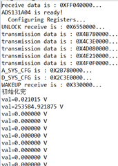 1.我在写入寄存器后,尝试读取过A_SYS_CFG和D_SYS_CFG,并分别返回0x2B78和0x2C3E,均符合数据手册中对读取寄存器回应的描述(001a aaaa dddd dddd)。