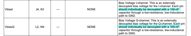 另外偏置电压引脚VbiasI VbiasQ 是用来将600mVpp模拟输入范围进行电压偏置的吗? 比如给VbiasI 0.5V 电压 是不是模拟输入范围向上偏置了500mv 比如 [-300mv ~ 300mv] 就变为了{200 ~ 800mv】?