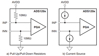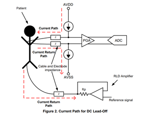 测量ADS1294电极脱落检测引脚的电平状态:电极断开后,脱落检测不到的引脚的电压值为1.9V左右,其他脱落检测正常引脚的电平为0V。