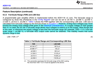 2、当电源电压低于满刻度范围时,比如在您的应用情况下,若VDD = 5V和满刻度范围=±6.144V 时,无法获得满刻度ADC输出代码。