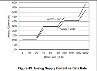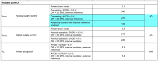 ADS1248模拟供电电压对电流的需求如下datasheet截图,它与数据速率有关,最多不会超过1mA,因此您可以到“电源管理”版块咨询电源工程师让他们为您推荐合适的电源芯片。因为需求的±2.5V是ADS1248的模拟供电电压,建议使用线性电源,请他们推荐线性电源。