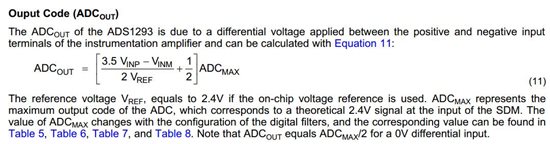 按下图的公式,假设输入1mV,Vref=2.4,ADCmax=0x8000,则ADCout = 0x4017。而输入0mV时,ADCout=0x4000。