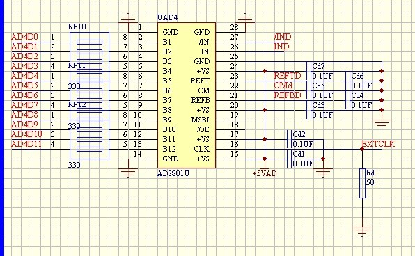 2.我是通过FPGA来读AD转换值的,当ADC开始转换时,当我26脚悬空还没有接入模拟量发现AD有输出(我把12位都接了LED作为监测的),用万用表量是2.25V,这个值好像是(VrefT+VrefB)/2,奇怪,这个是输入脚啊??