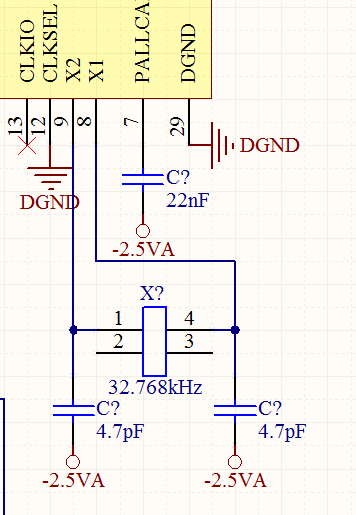 2. 晶振的地和稳压芯片的地一致。PLLCAP按手册说明,连22nF电容到芯片AVSS。