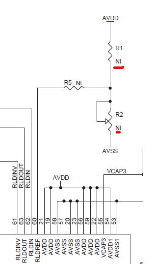 我们在ADS1298ECG-FE原理图上看见很多NI的符号, 到底是什么意思呢? 具体的值是多少呢? 如下面两个图所示: