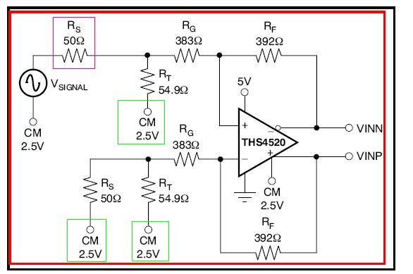 我看了ADS1672的器件手册后面的推荐电路,单端转差分THS4520部分的电路(见附件)感觉不好理解。一般的差分运放为了设置增益,或者说使其电阻匹配,都是相对于地,而图中青色部分显示的,都是针对于CM,为什么要这么做?如果这几个点接地,会怎样?