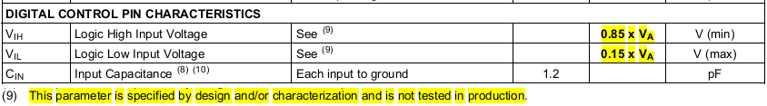 (1)ADC08D500数据手册中给出了控制引脚的VIH和VIL的下限和上限,分别为0.85*VA、0.15*VA,VA一般取1.9V,则VIH和VIL的限制分别为1.615V和0.285V。