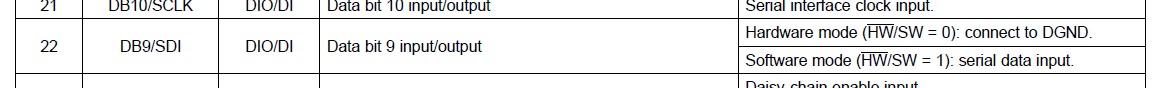 在串行硬件模式下,datasheet上说SDI接DGND,这样芯片就只能读数据了,通过外部引脚的连接