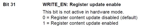 3,关于Configuration Register的配置问题,datasheet上所述的Bit31是寄存器更新使能,默认