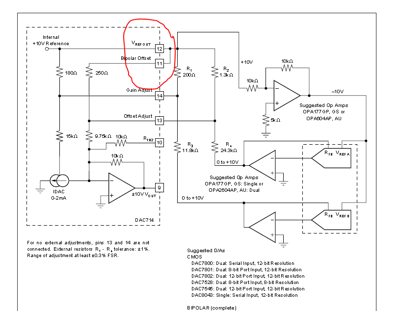 DAC714,TI的一款16位DA,可以输出正负10V,但是无论怎么都不能输出负的,也不知道是不是电路图接错了