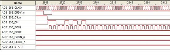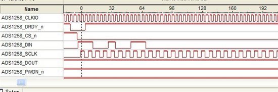 ADS1258芯片底部的散热片需要与地连在一起吗?我的电路中给ADS1258供电的是正负2.5V,全部按照推荐电路设计的,两道的ADS1258的REF+端的电压是0V,REF-端的是-2.5V,这个电压基准电压正常吗? 我在调试时,将ADS1258的各寄存器依次配置为0x02,0x00,0x00,0x00,0xff,0xff,0x00,0x00,0x88,0x8b,为确认是写入了,又从ADS1258中读出了各寄存器的值,对比后和写入的是一样的。但在读取的status的bit6始终为高电平(即AIN输入电压超过量程),后面的3个字节的数据全是高电平,此时的模拟输入脚都没加信号。输出的通道号倒是正常的,后来在ADCINN和ADCINP上加了个0.1uF的电容,2.5V电源也多加了个10uF的钽电容,后面的3个字节的数据又全是低电平,其他的没变。用逻辑分析仪抓取的图片如下