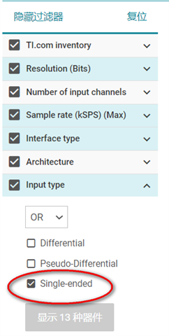 下面链接是TI的精密ADC筛选链接,您可以在网页左端的Input type 筛选框中勾选single-ended以选择单端输入的ADC。一般TI ADC都有EVM板可购买。