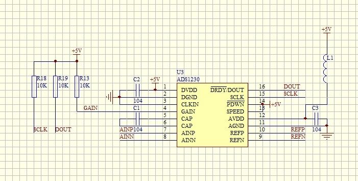 最近在使用ADS1230做一个压力控制设备,精度要求不高,但在测试的时候发现一直能不断DOUT的下降沿信号,连上MCU后DOUT一直是高电平。这个的版图,设计的时候忘了把REFP和REFN接上电源和地,实际测试的时候接上了,电源电压为5V,万用表量了很准。我现在想知道这个片子到底工作了没有,由于手里没有示波器,只能用程序仿真着看,按说应该也没问题 啊,还有没有其他的方法可以看片子是否正常工作,如果不工作可能是哪儿的问题引起的呢?谢谢