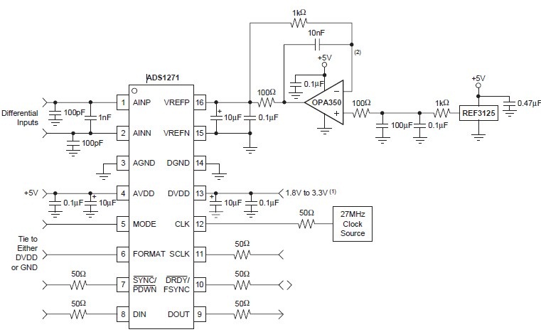 ADS1271的简易连接如下图所示(手册中有):