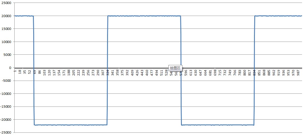 一晚上的调试我发现其实我读取到的数据是正确的,只是在我使用USART向电脑发送数据时波特率太低,造成当前数据还没发送完,新的数据又再次刷新,从而造成我在读取ADS1292R内部的1HZ测试信号时读取到的波形是方波,但频率和占空比不对。现在我将USART的波特率改为115200,这样我就可以读取到1HZ的方波了,但是幅值貌似有点不对。下面是我使用Excel,对读取到的1000个数据进行处理的波形。