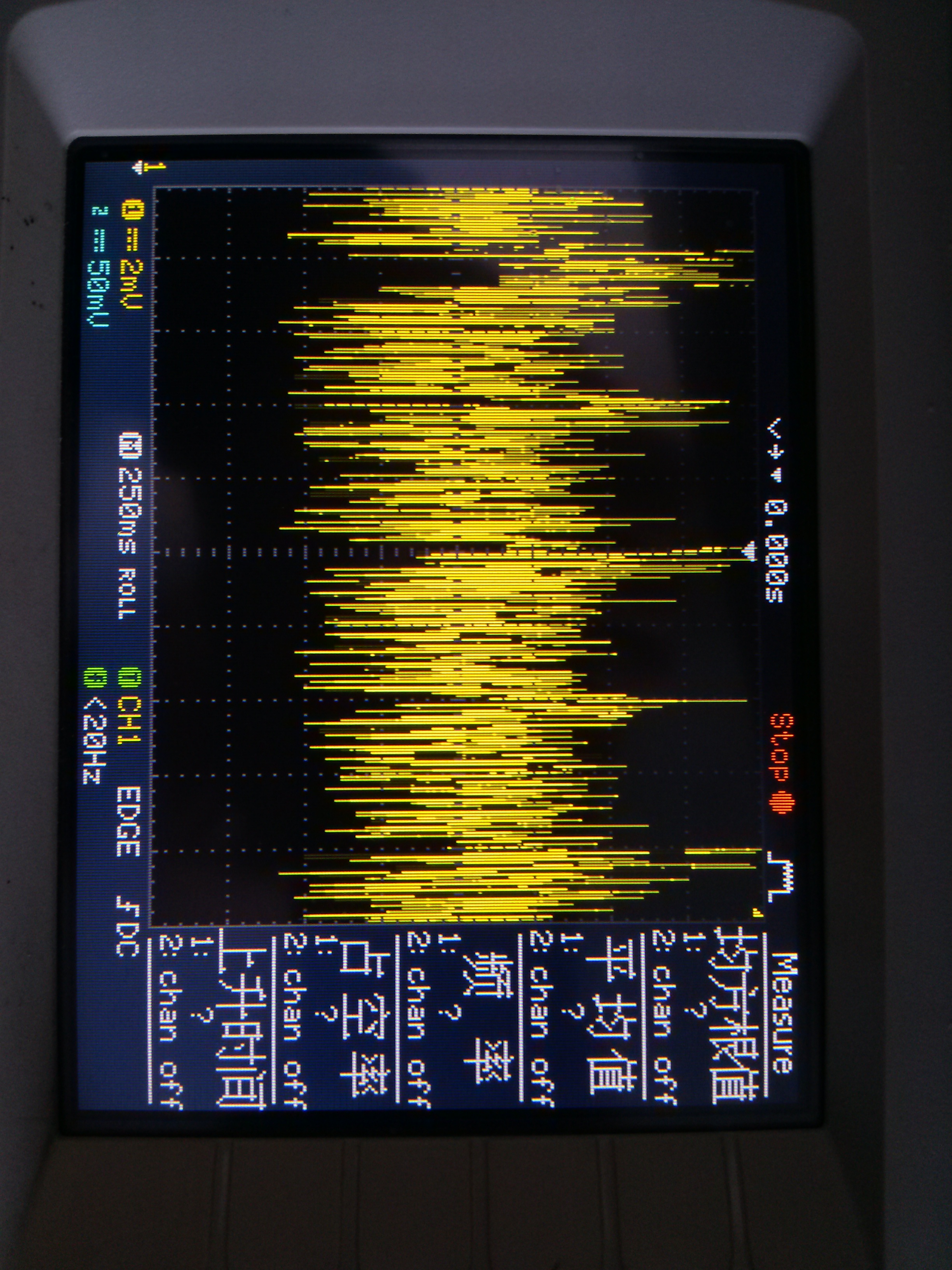 你好,我有设置的,我把通道2寄存器的BIT[3:0]设置成0101,选择测试信号,再按照datasheet上写设置config2寄存器INT_TEST位用来turn on the test signal ,设置TEST_FREQ位为1,用来选择1Hz方波, 可是结果就是想图片显示的那样,不知道为啥,感觉有可能是我的芯片有问题