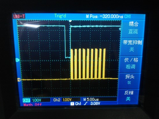 以下是DRDY和SCLK的波形。蓝色是DYDY,黄色是SCKL