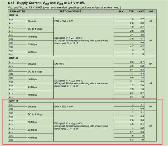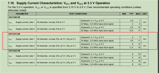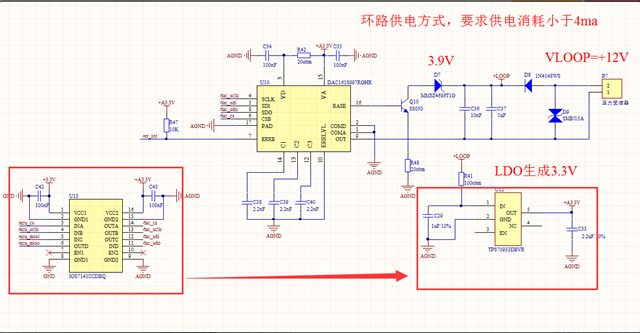 对于如下的图。所有器件的供电都是由环路LDO提供的。也就是说DAC161S997RGHR和IOS7141CCDBQ它们消耗的电流必须要小于4ma是吧。那么问题就来了,对于TI的隔离芯片来说,消耗的电流还是蛮大的。这样就不能满足小于4ma的要求啊。您能否推荐下低能耗的隔离芯片?如下的是我寻求的几款TI隔离芯片的参数。不知我理解的是否有误?另外就是DAC161S997RGHR我在使用时存在误差,设置4ma时,实际值是4.0369ma,设置20ma时,实际值是20.0027ma.也就是设置电流值越大误差就越小。不知这个误差是怎么造成的(是否因为隔离芯片消耗电流太大导致的)。怎么解决这个误差问题?请您百忙之中抽空回复下,谢谢啊