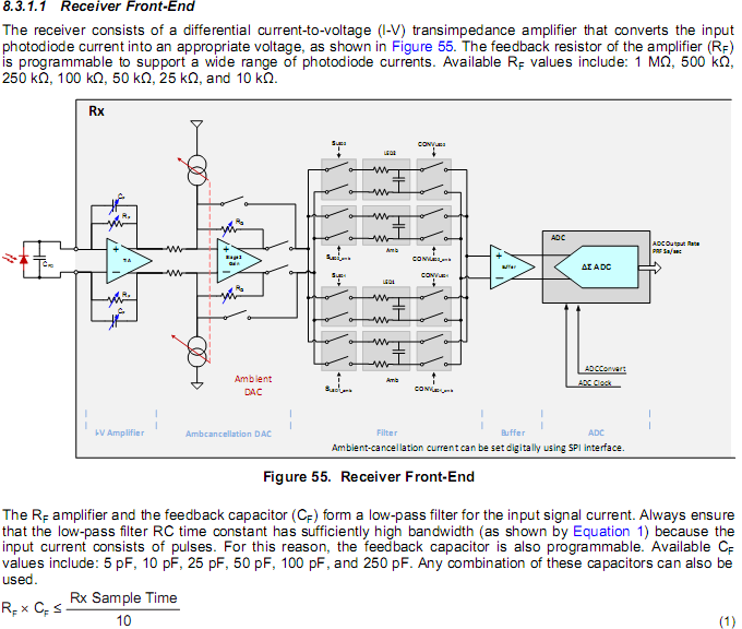 RT,在AFE4490的数据手册中提到I-V放大器那部分有一个电容和一个电阻形成一个低通滤波器,但并没有说是EMI滤波器,在电气参数说明表格中,提到I-V放大器部分包含EMI滤波器,有研究过的大神帮忙回答下
