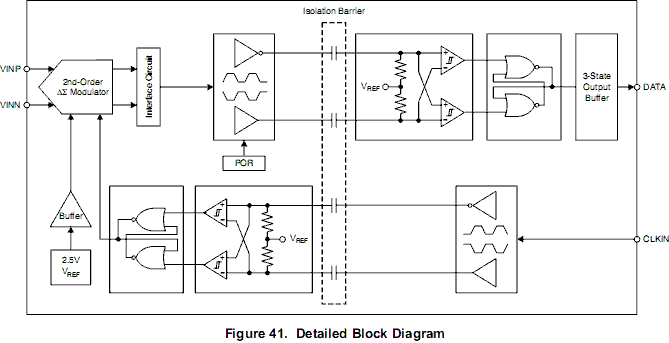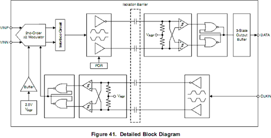 特点是: 这是隔离型(ΔΣ)1位数字调制输出模拟信号转换器件,能工作在 20Mhz 时钟频率下。内部采用氧化硅(SiO2) 绝缘数字隔离技术, 具有很强的抵抗磁干扰的能力。 此隔离技术已证实能提供隔离电压达 4000VPEAK(AMC1204) 和 4250VPEAK(AMC1204 B), 符合 UL1577 、 IEC60747-5-5 和 CSA 标准规范。