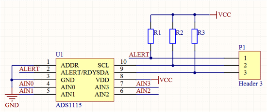 注明:在实际使用中只使用SCL和SDA引脚与MSP430连接,未使用ALERT引脚。