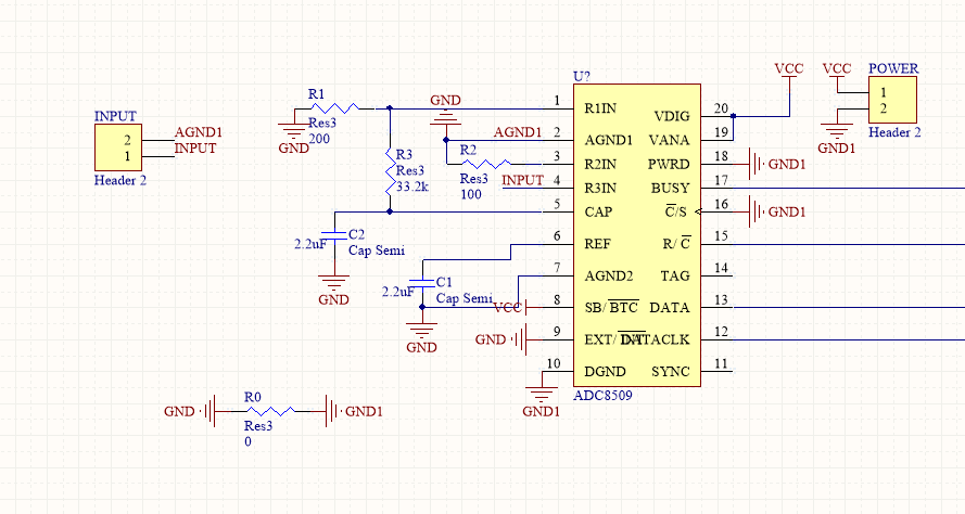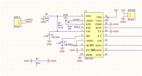 这是我画的原理图,两个2.2uf的电容我用的是4.7uf的电解电容,图是参考数据手册的,VCC供电5V,发现用万用表测试CLK时钟信号竟然显示是负电压;求助,这怎么会出现负的电压值啊?