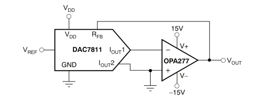 为什么DAC7811输出达不到Vref,并且根据手册上的这个图输出怎么不是线性的,不满足这个等式V OUT=-V REF x