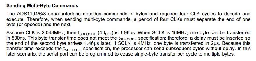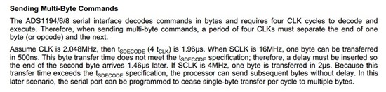 参照TI的datasheet编写了ADS1198驱动程序,发现读ID的时候老是不对,手册看了好几遍,实在不知道问题出在哪,求TI工程师给予回答。 根据这段话,SPI的时钟设置在允许的范围之内。