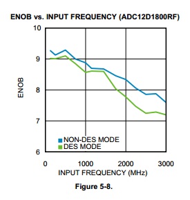 在使用ADC12D1800RF时,外部信号输入为950M时有效位最低,请问是什么原因呢?