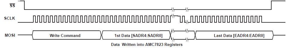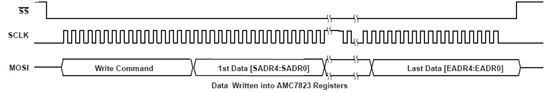 host must send 0x8087 first, and then clock six data words sequentially out of the AMC7823. The first data word