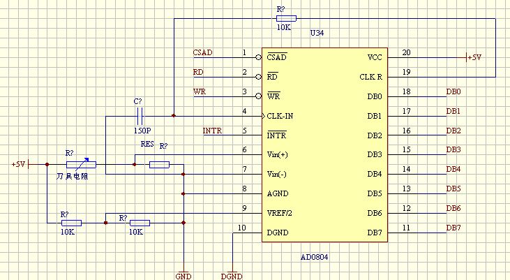 如图, 该ADC0804中, 6脚处需不需要接一个限流电阻呢? 是接好, 还是不接好呢?  请大家指教, 多谢!