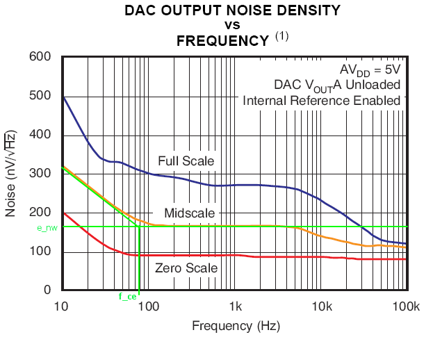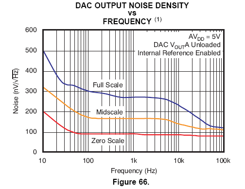 图 1是DAC8568C的噪声谱密度,通过该图可以估算其噪声有效值和峰峰值。