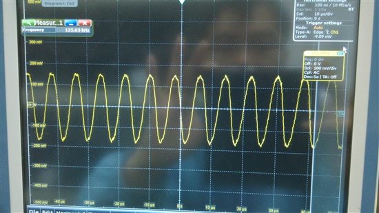 我使用DAC8760,不用HART模式,把DAC设置成输出1.5V直流电,设置后,发现输出在1.5V上以正弦波震荡,峰峰值为300mV,设为其他电压值也有此现象,但在0.6V以下都无此现象。下图是示波器采集到的波形,因为把示波器设为交流模式,所以显示时去除直流分量1.5V, 均值显示为0。
