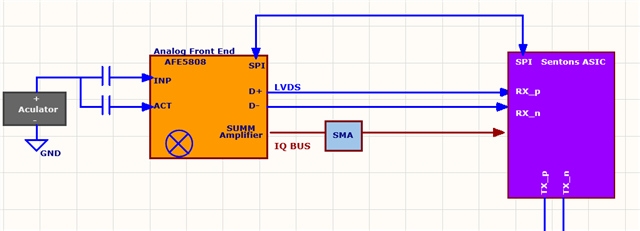 currently our ultrasound asic is development some function, tx/rx is analog zone then signal are differential pair. AFE5808 has 8-ch input and 8-ch LVDS outputs